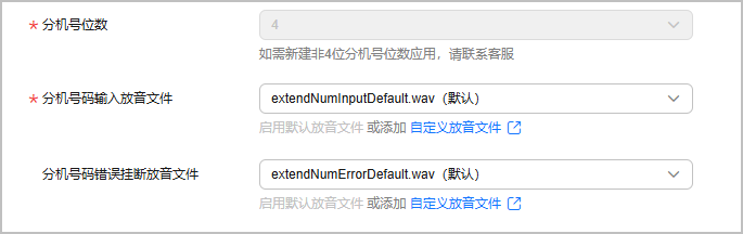 - 分机号位数最大支持四位数字,用户在创建AXE模式的应用时系统固定设置为最大值4位分机号位数,如需新建非4位分机号位数应用,请联系客服。