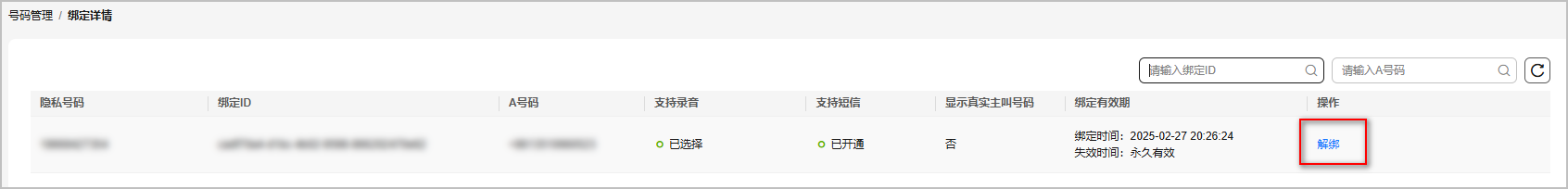AX模式不支持自动解绑,无法设置绑定关系保持时间。若要解绑AX模式的隐私号码绑定关系,有以下两种方式:
