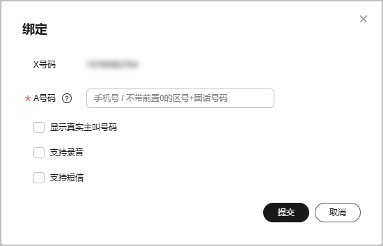 - 调用对应模式的绑定接口设置,固话号码格式为国家码(如+86)+不带前置0的区号(如755)+本地固话号码(如28****01),填写为"+8675528****01"。