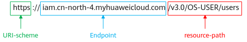 https://iam.cn-north-4.myhuaweicloud.com/v3.0/OS-USER/users