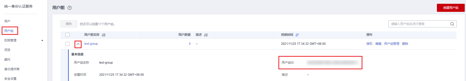- 单击需要查询的用户组前的下拉框,即可查询用户组名称、用户组ID。