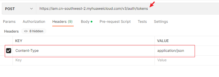 - 接口地址为:https://iam.cn-southwest-2.myhuaweicloud.com/v3/auth/tokens