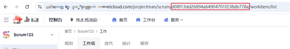- 进入指定项目的需求管理服务页面。如下图所示,红框部分即为CodeArts项目ID。