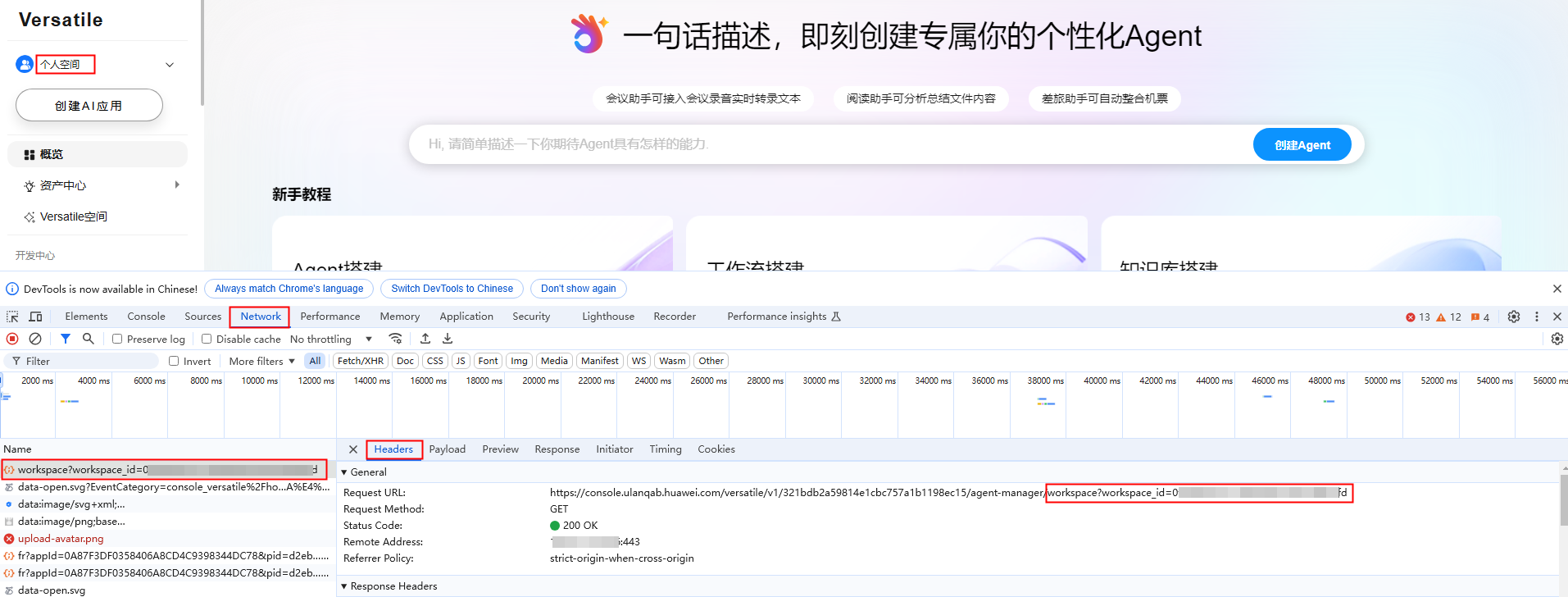 - 可以在接口调用中看到workspace_id=xxx。xxx为工作区ID的值。