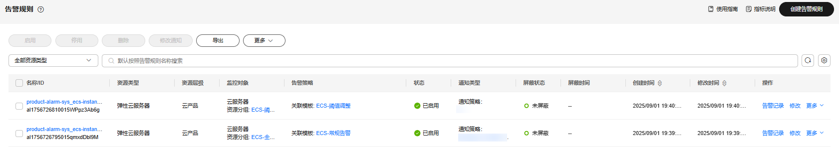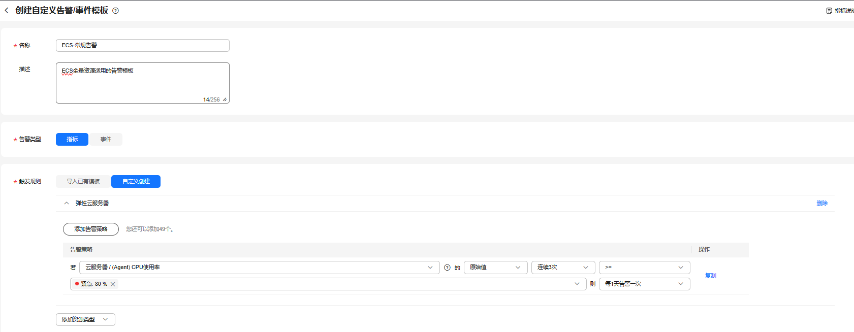 ECS全量资源适用的告警模板
