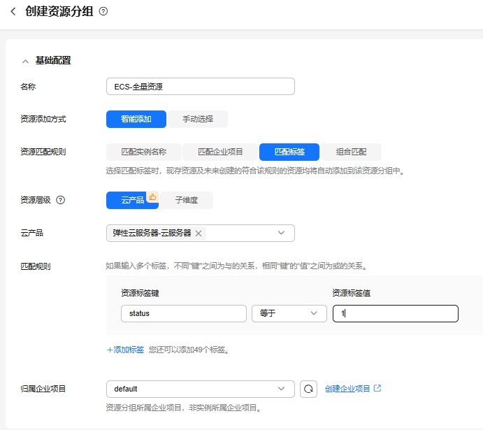 匹配标签的匹配规则。匹配规则最多可添加50个标签。标签由键值对组成,用于标识云资源,可对云资源进行分类和搜索。