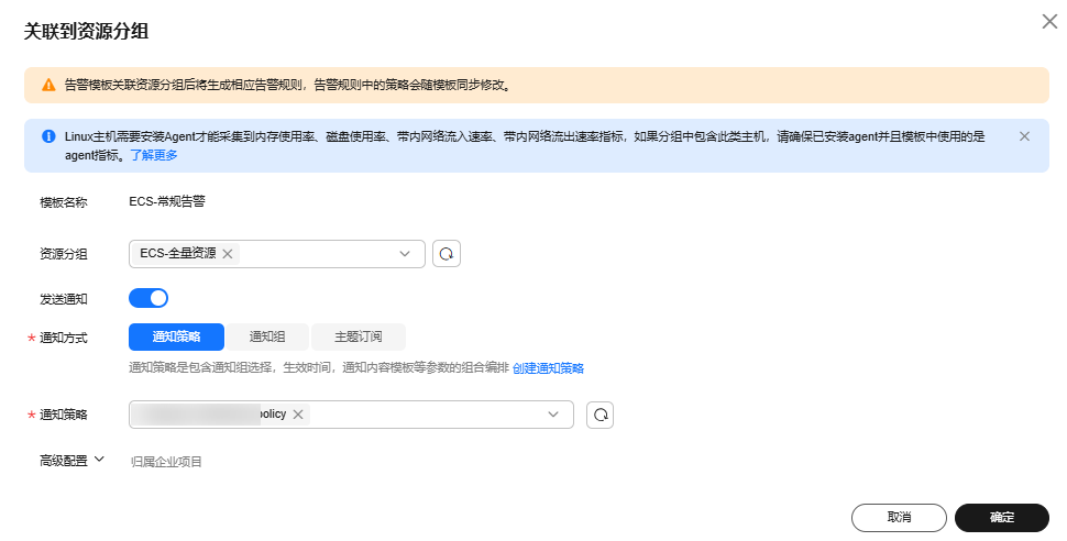 告警模板关联资源分组