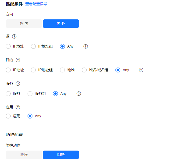- 在左侧导航栏中,选择 ,进入互联网边界防护规则页面。