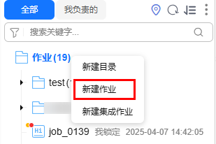 - 在DLI中创建一个Flink作业,作业名称为“test”。