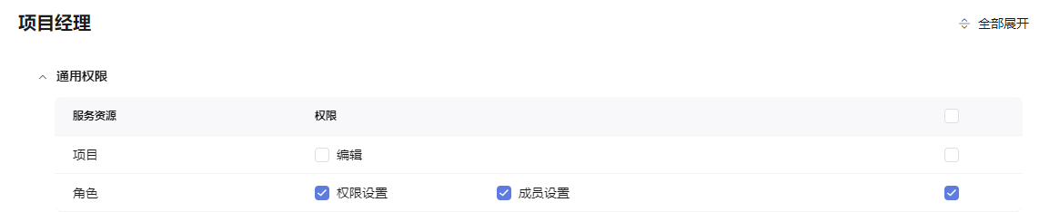 - 单击“编辑”,为项目经理配置权限。