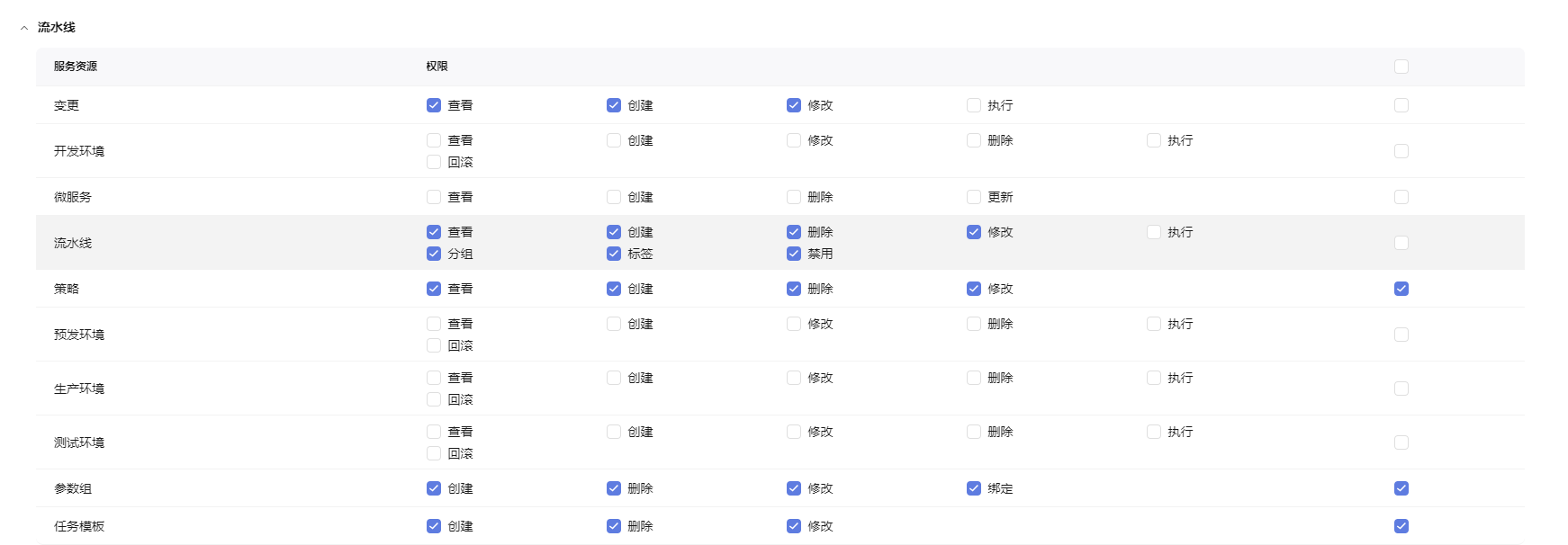 - 流水线:参考下图勾选权限。