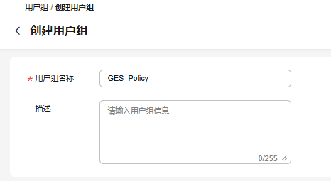 - 在“创建用户组”界面,输入用户组名称“GES_Policy”。
