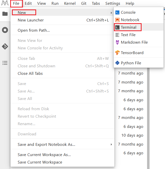 图3 进入Notebook实例的Terminal工作目录示例如下图所示:
