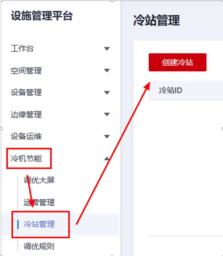 选择冷机节能菜单 -> 冷站管理 -> 创建冷站,