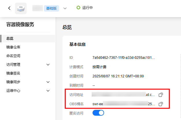 域名:swr-ee-${instance-id}-registry.obs.${region-id}.myhuaweicloud.com