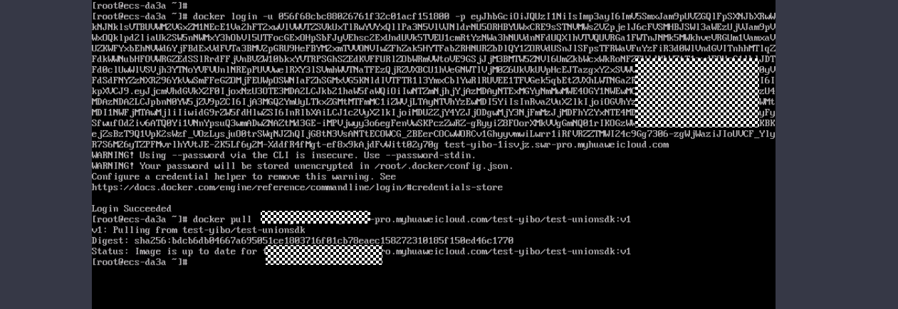 - 登录华东-上海一下的ECS1节点,验证可成功下载华南-广州下的镜像仓库中的镜像。
