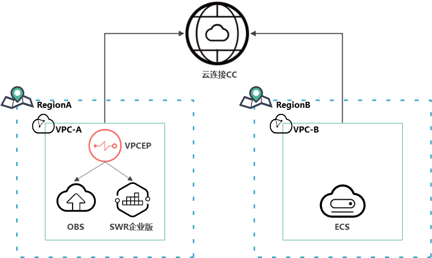 当您需要跨地域推送或拉取 SWR 企业版镜像时,需要让源端 VPC 与目标 SWR 企业版实例的 VPC 网络互通,可以通过以下步骤实现: