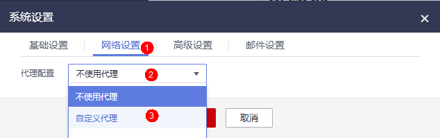- 在“代理配置”下拉选项中,选择“自定义代理”;