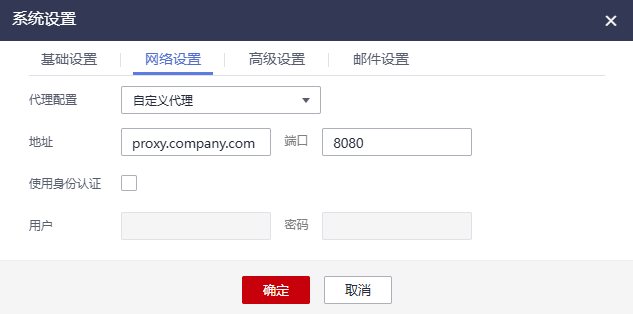 - (可选)勾选“使用身份认证”,输入“用户”和“密码”,以admin和123456为例;