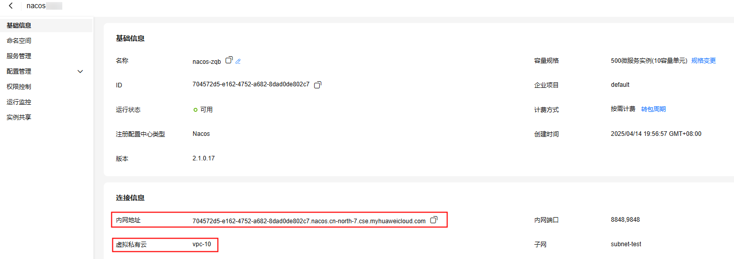 注册时需注意:将CAE部署的应用注册到Nacos上,需要确保CAE和Nacos处于相同的VPC。
