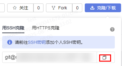 其中,git@example.com:test/Test_Repo.git表示要下载代码仓的SSH地址,该地址从CodeArts Repo界面复制。