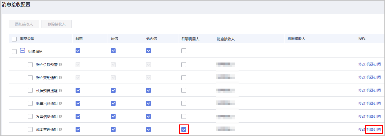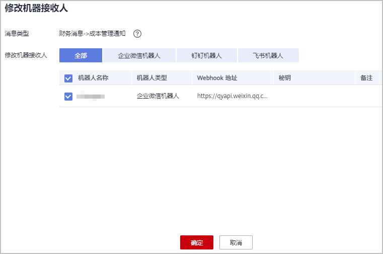 客户创建预算和监控器时,可以设置消息提醒。华为云不仅支持通过短信、邮件的方式提醒接收人,还支持群聊机器人的订阅方式。