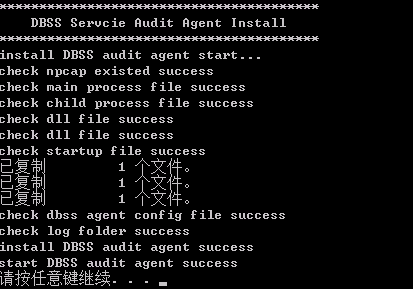 - 安装完成后,在Windows任务管理器中查看“dbss_audit_agent”进程。