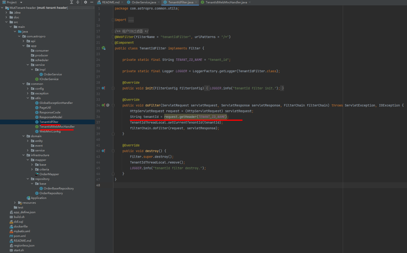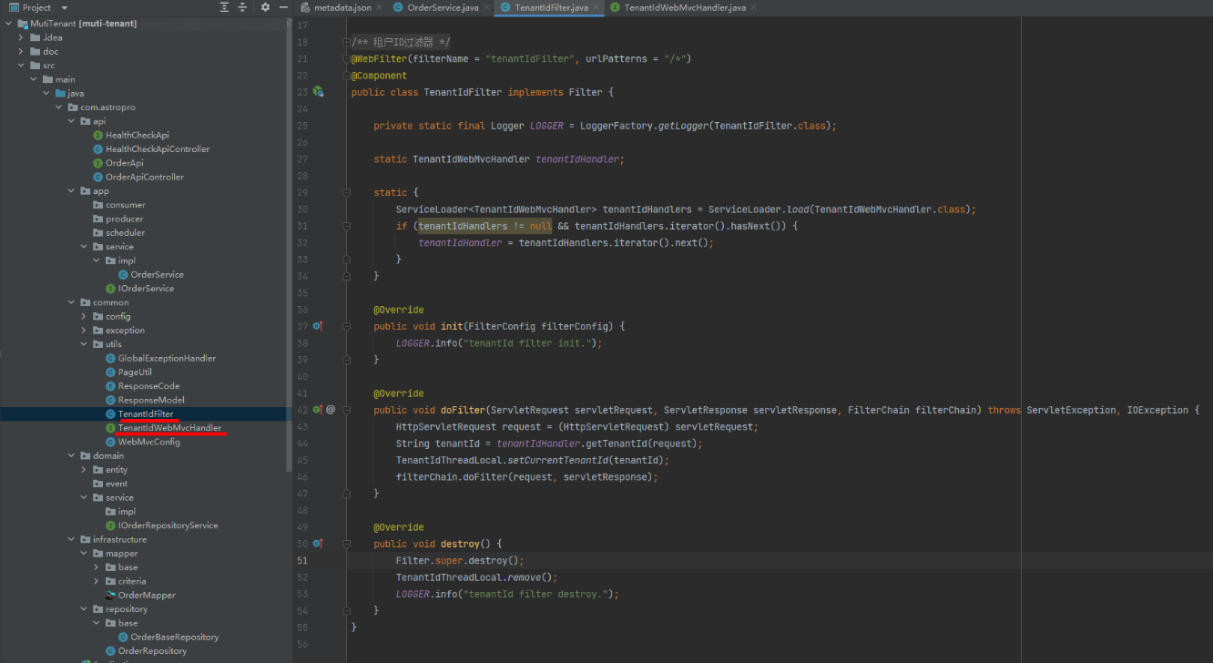 - TenantIdFilter:用于将租户信息设置到线程变量中的过滤器。