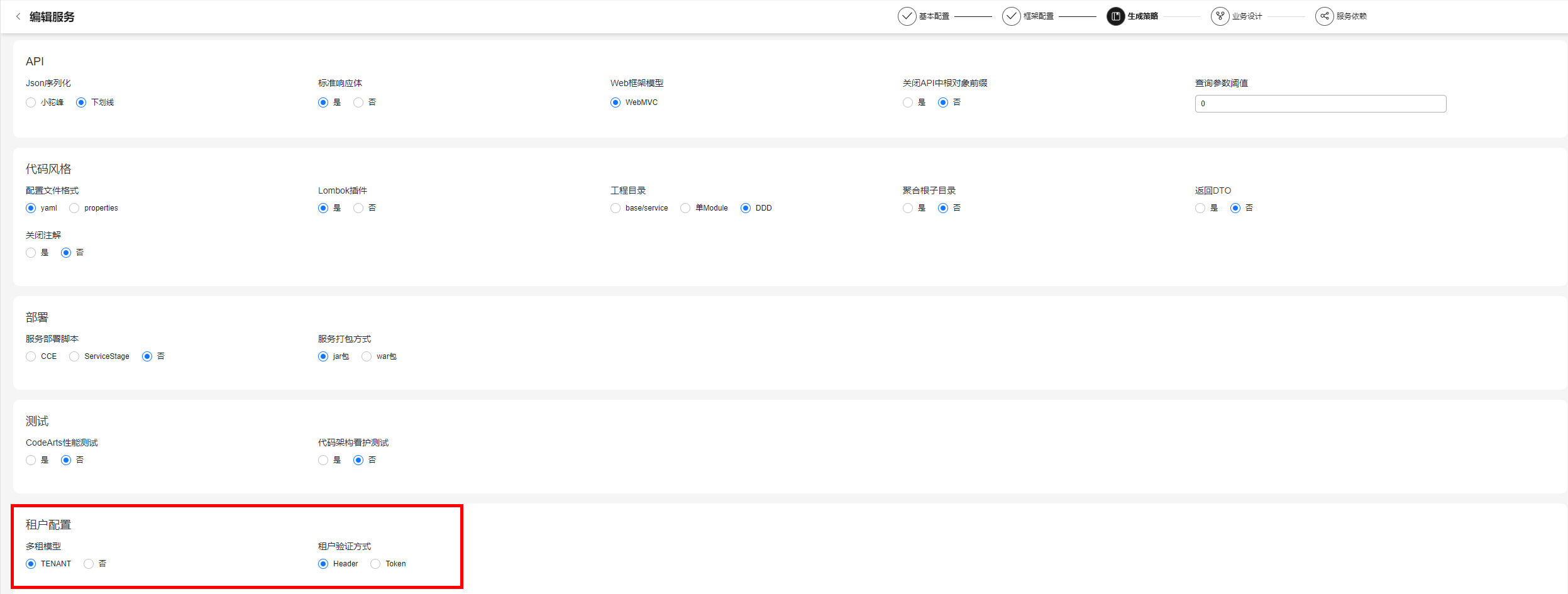 - “租户验证方式”选择“Header”。