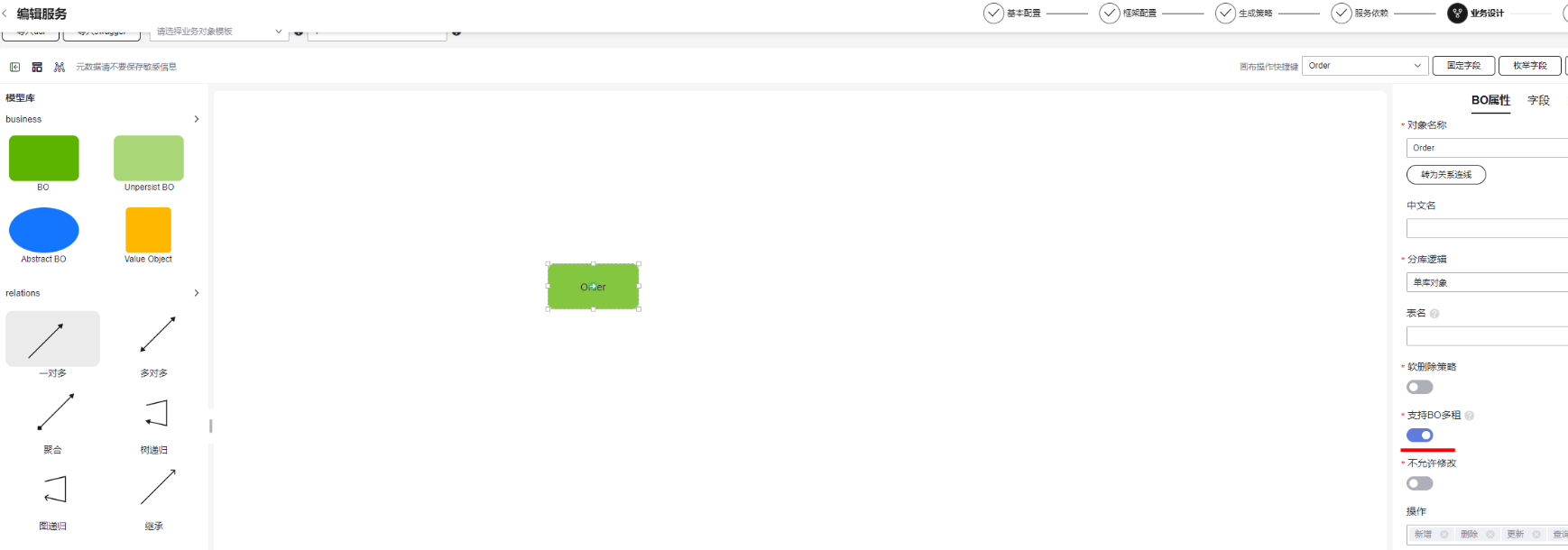 - 单击顶部流程导航栏的“业务设计”,进入业务设计页面。