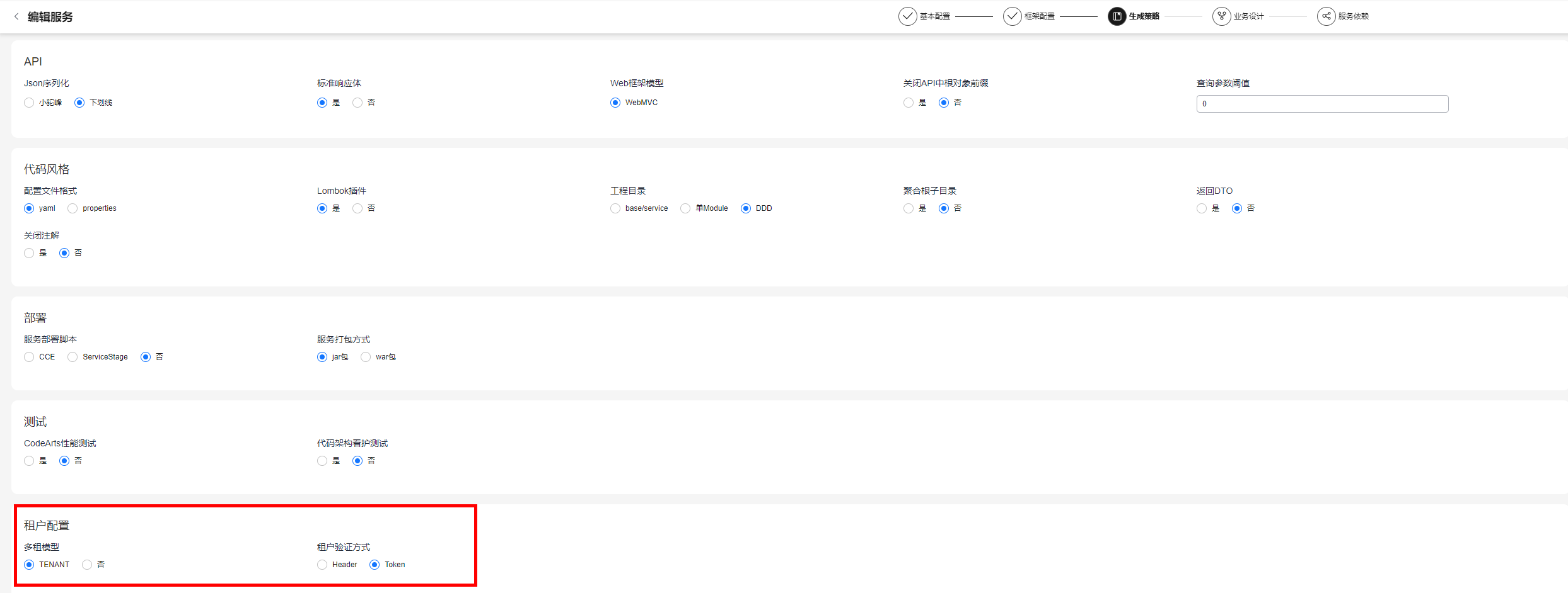 - “多租模型”选择“TENANT”。