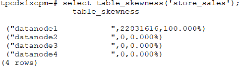 SELECT * FROM pgxc_get_table_skewness ORDER BY totalsize DESC;