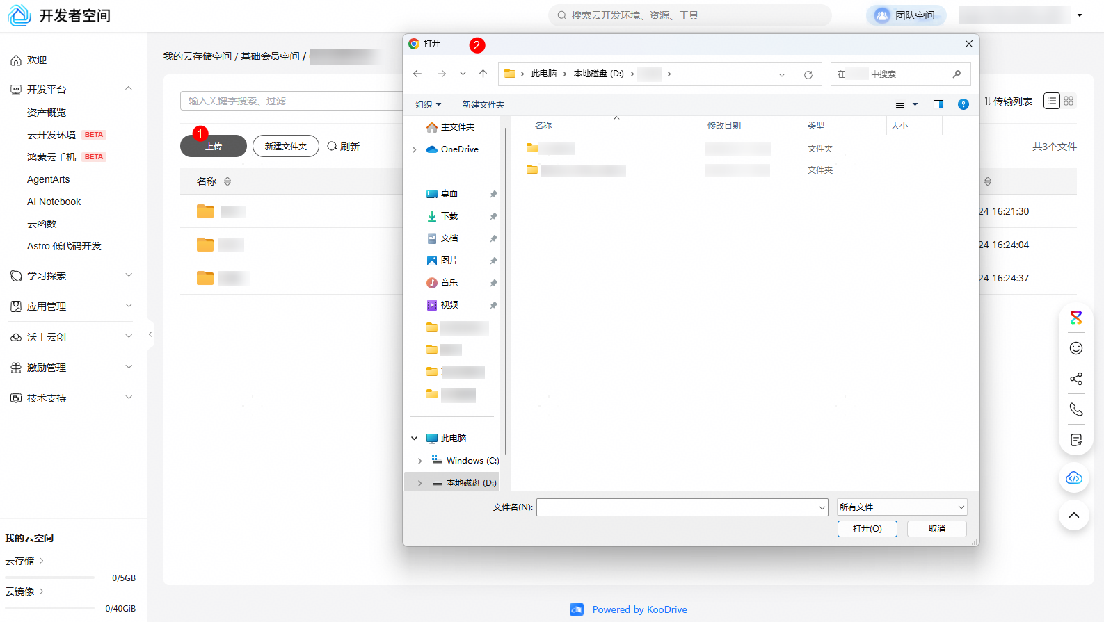 1, 点击上传按钮,暂不支持文件夹直接上传