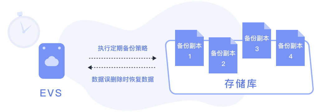 云备份在设置的时间点自动对资源进行备份,产生的备份副本会自动保存至存储库,并且自动删除过期的备份。恢复数据时将对应的备份副本恢复即可。