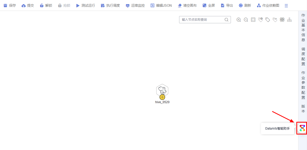 在数据开发界面的右侧,单击打开DataArts智能助手,开始使用DataArts智能助手。