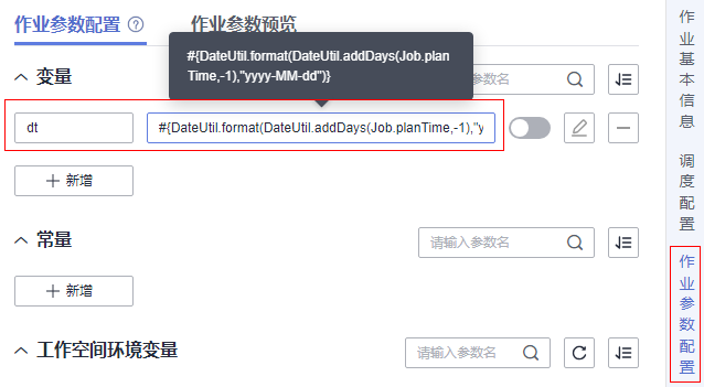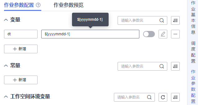 图2 简易变量集参数值举例$[yyyymmdd-1]