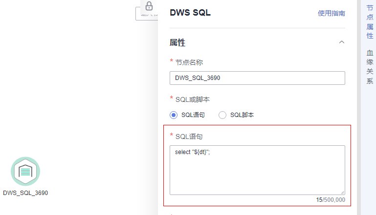 在SQL作业算子中使用已设置好的参数,如下图所示: