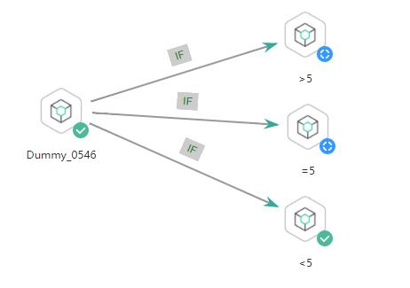 每一个条件分支都需要填写IF条件,IF条件为通过EL表达式语法填写三元表达式。当三元表达式结果为true的时候,才会执行连线后面的节点,否则后续节点将被跳过。