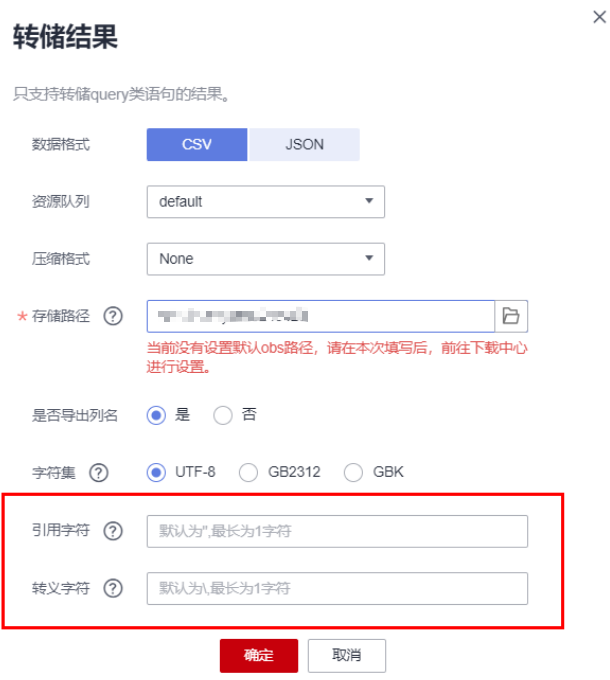 仅在数据格式为csv格式时支持配置转义字符。