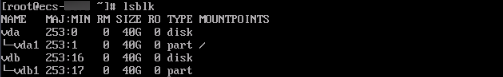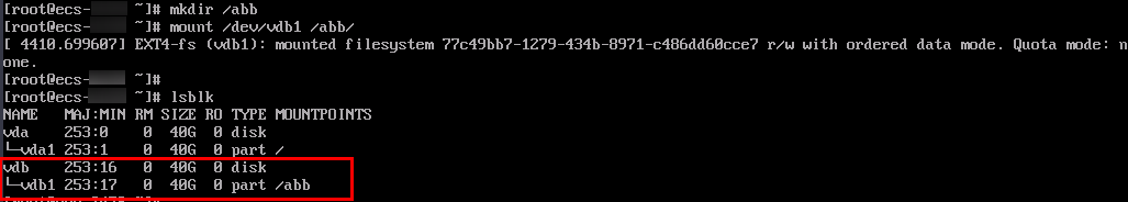以/dev/vdb1作为示例,操作时请以实际目录为准。