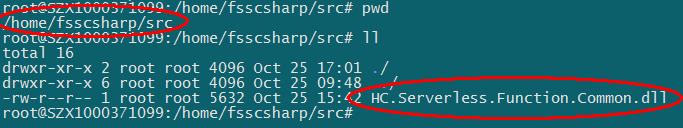 Log in to a Linux server on which the .NET SDK and required running environment have been installed. Create the /home/fsscsharp/src directory, and decompress the .dll package to this directory, as shown in Figure 1.