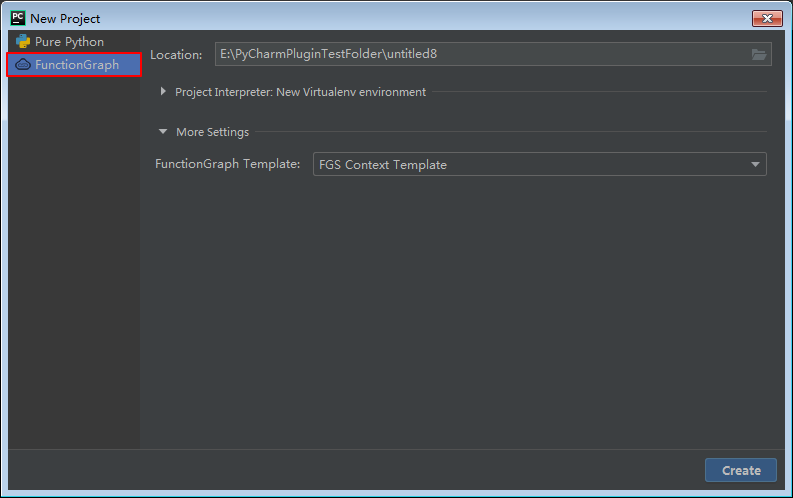 - On the displayed New Project page, choose FunctionGraph, as shown in Figure 5.