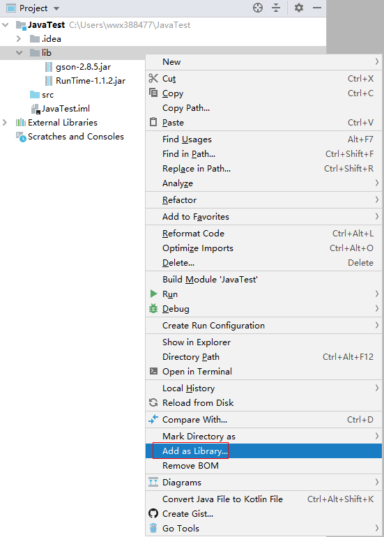 Create a folder named lib in the project directory, copy the RunTime-1.1.3.jar file and other required dependencies to the lib folder, and add the JAR files as the dependencies of the project, as shown in Figure 3.