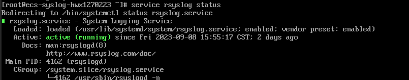 Run service rsyslog status to check whether the rsyslog running status is running.