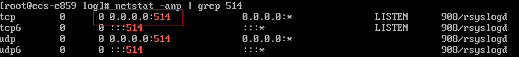 Figure 3 Rsyslog statusRun netstat -anp | grep 514 to check whether the listening function is enabled.