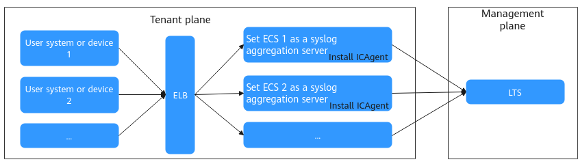 - You need to install ICAgent on syslog servers and configure log collection rules to collect logs to LTS.