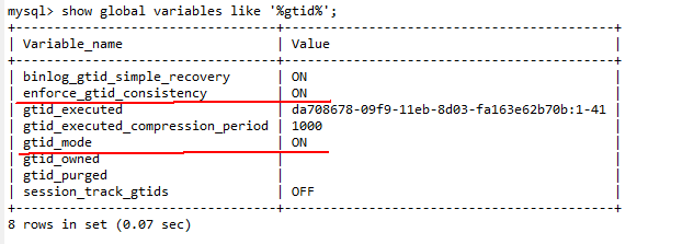 Run the show global variables like '%gtid%' command to check whether GTID is enabled. For details, see the official documentation of the corresponding MySQL version. (For details about how to enable the function in MySQL 8.x, see https://dev.mysql.com/doc/refman/8.0/en/replication-mode-change-online-enable-gtids.html.)