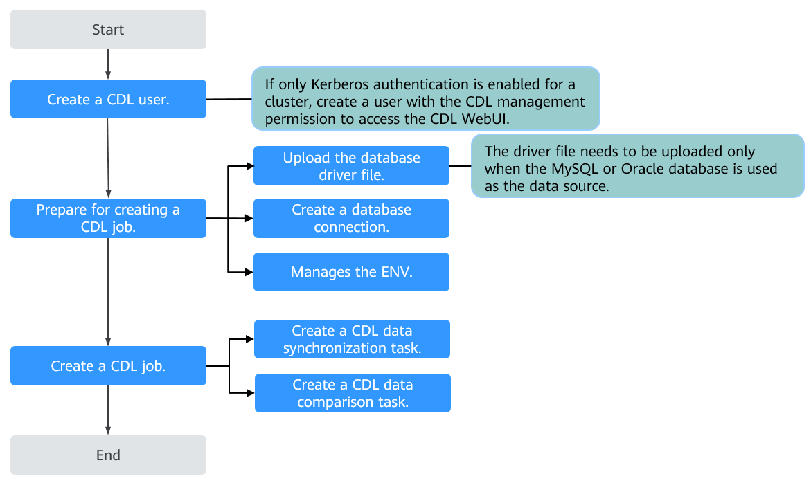 You can create data synchronization and comparison tasks on the CDLService WebUI. Figure 1 shows the process of using the CDL.