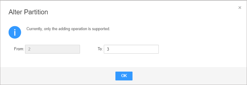 Currently, you can only add partitions to a cluster. That is, the number of partitions after modification must be greater than the number of original partitions.