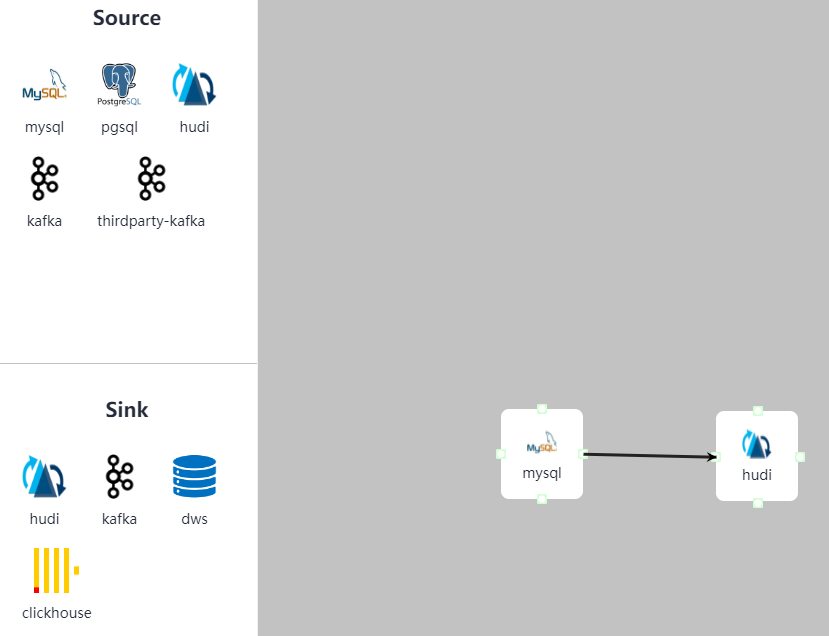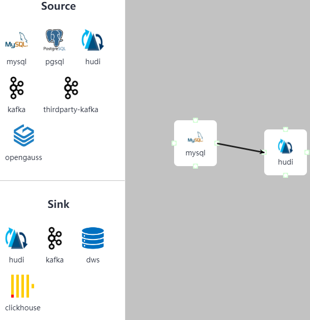 - On the Job Management page, select and drag the target element from Source and Sink to the GUI on the right.